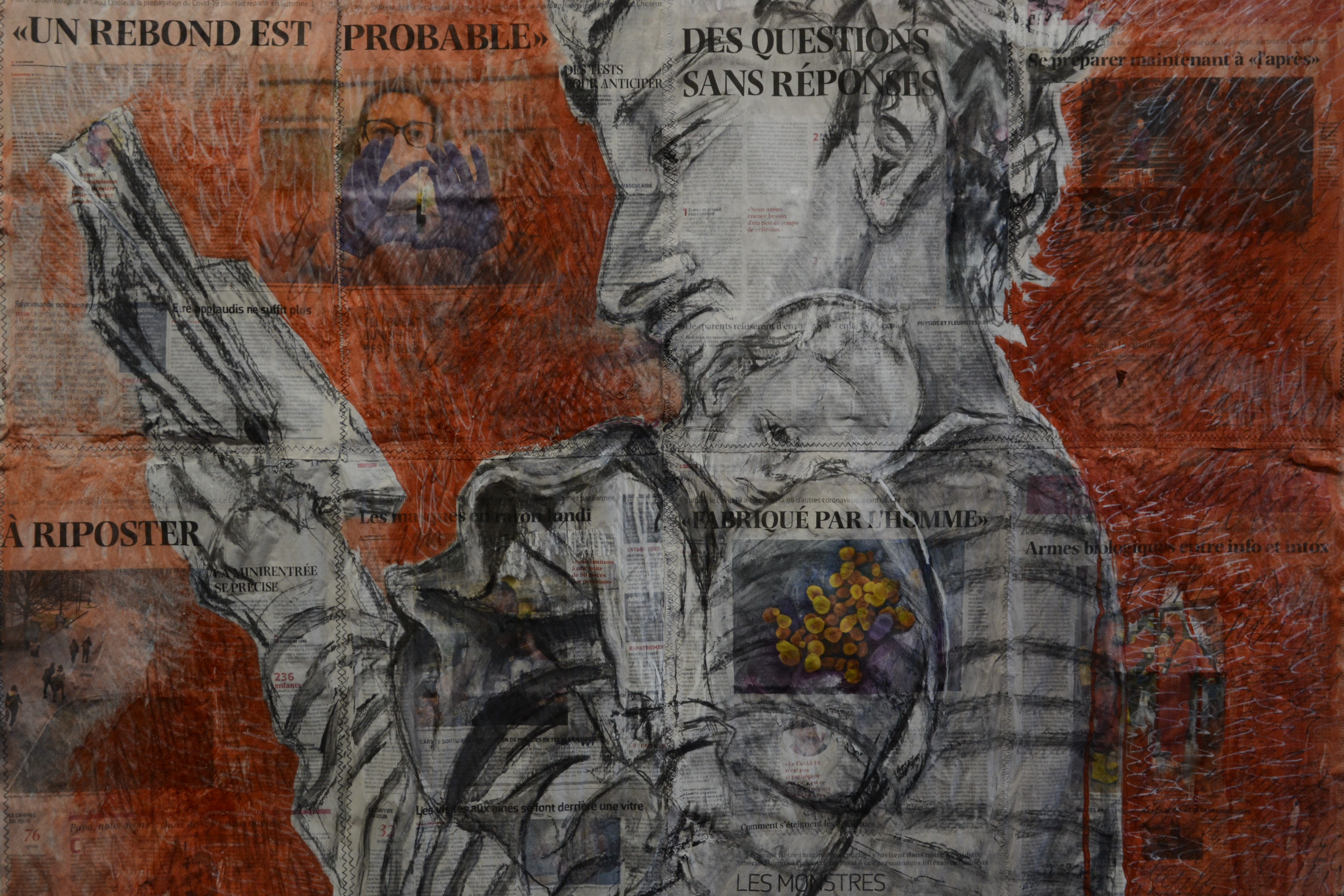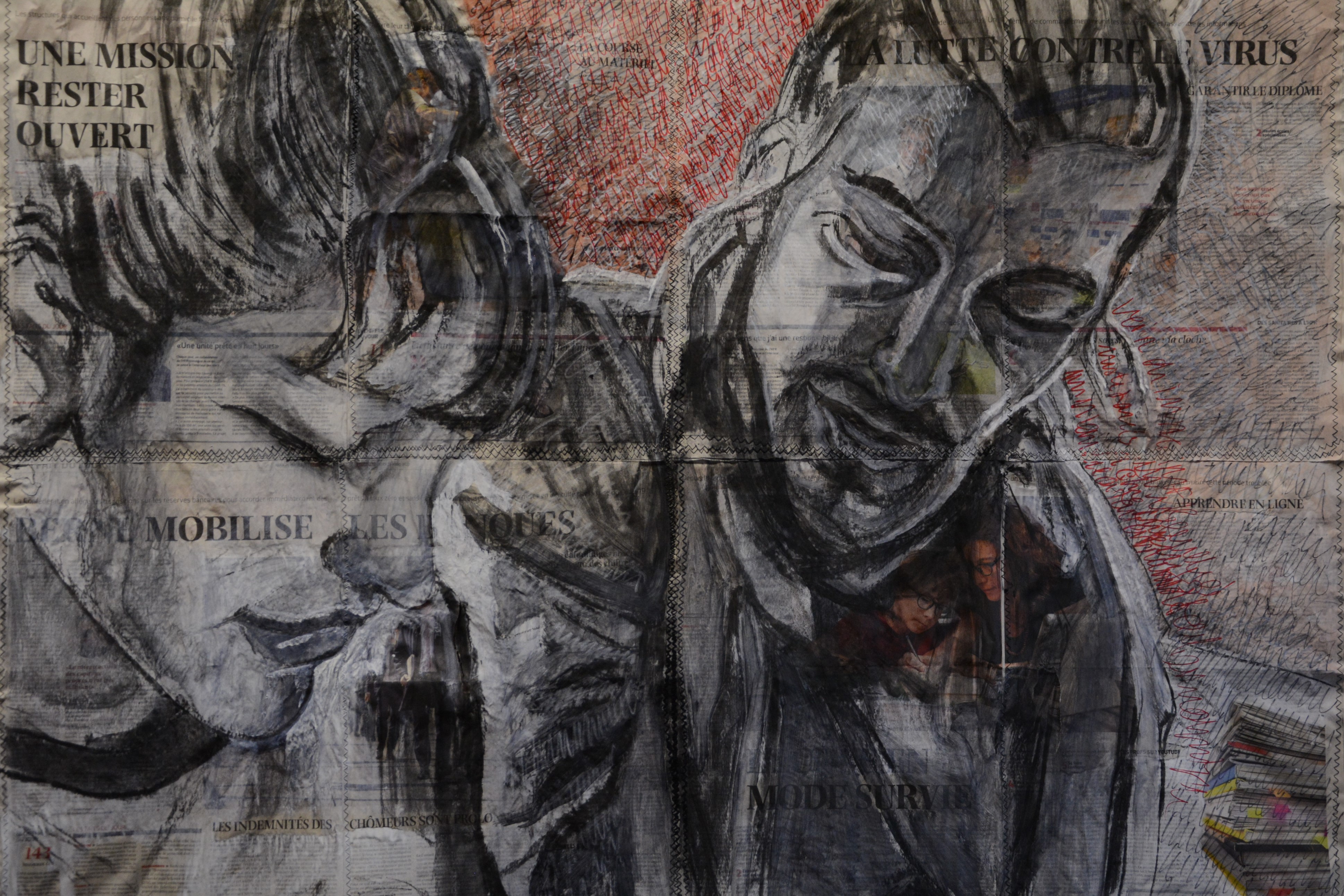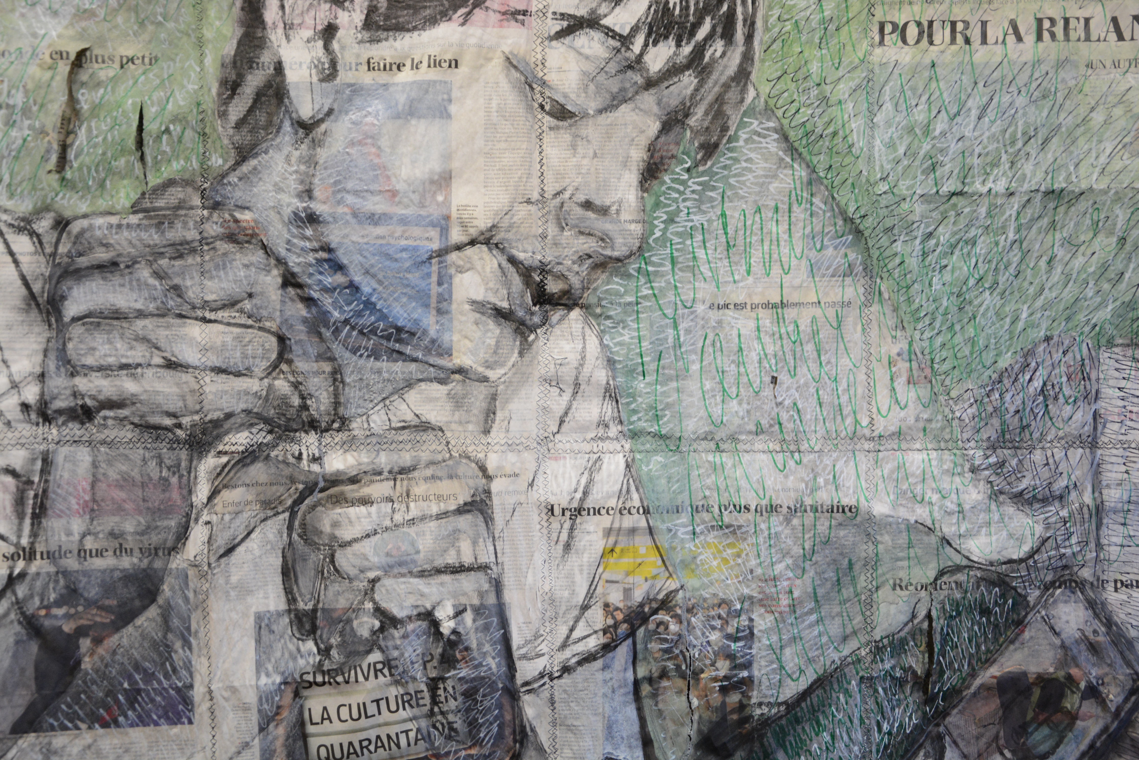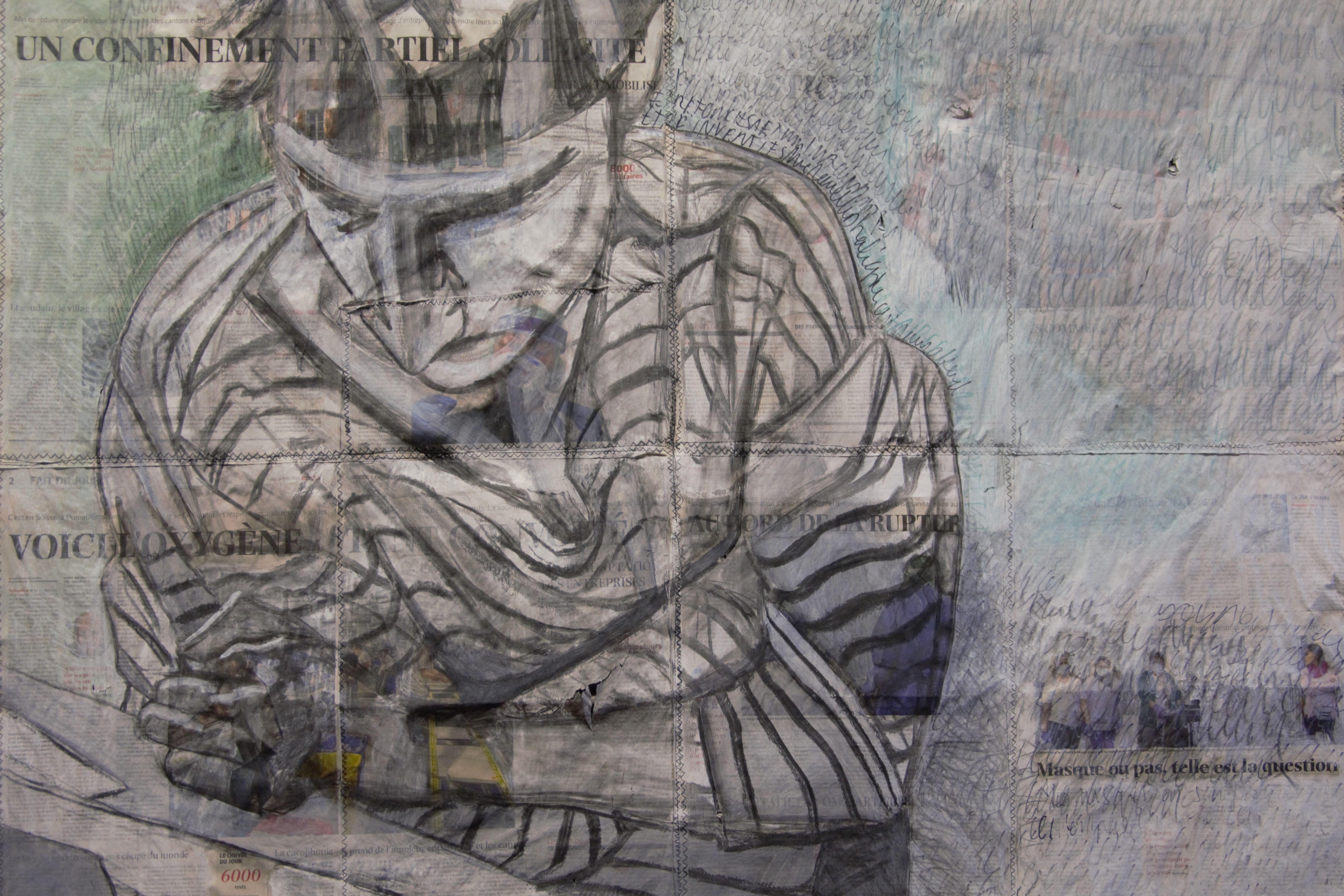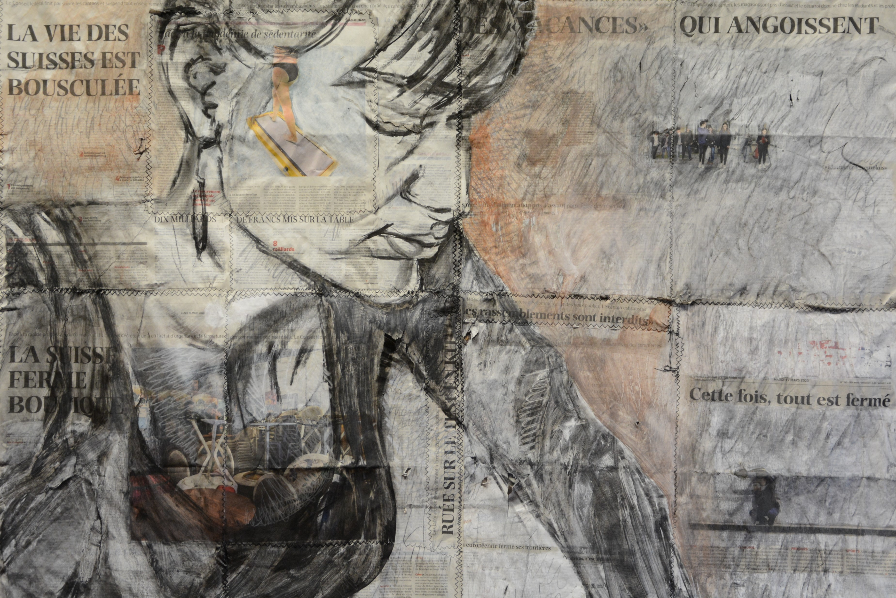Covid in situ est une trace d’un confinement obligatoire, alimentée par la presse locale comme toile de fond.