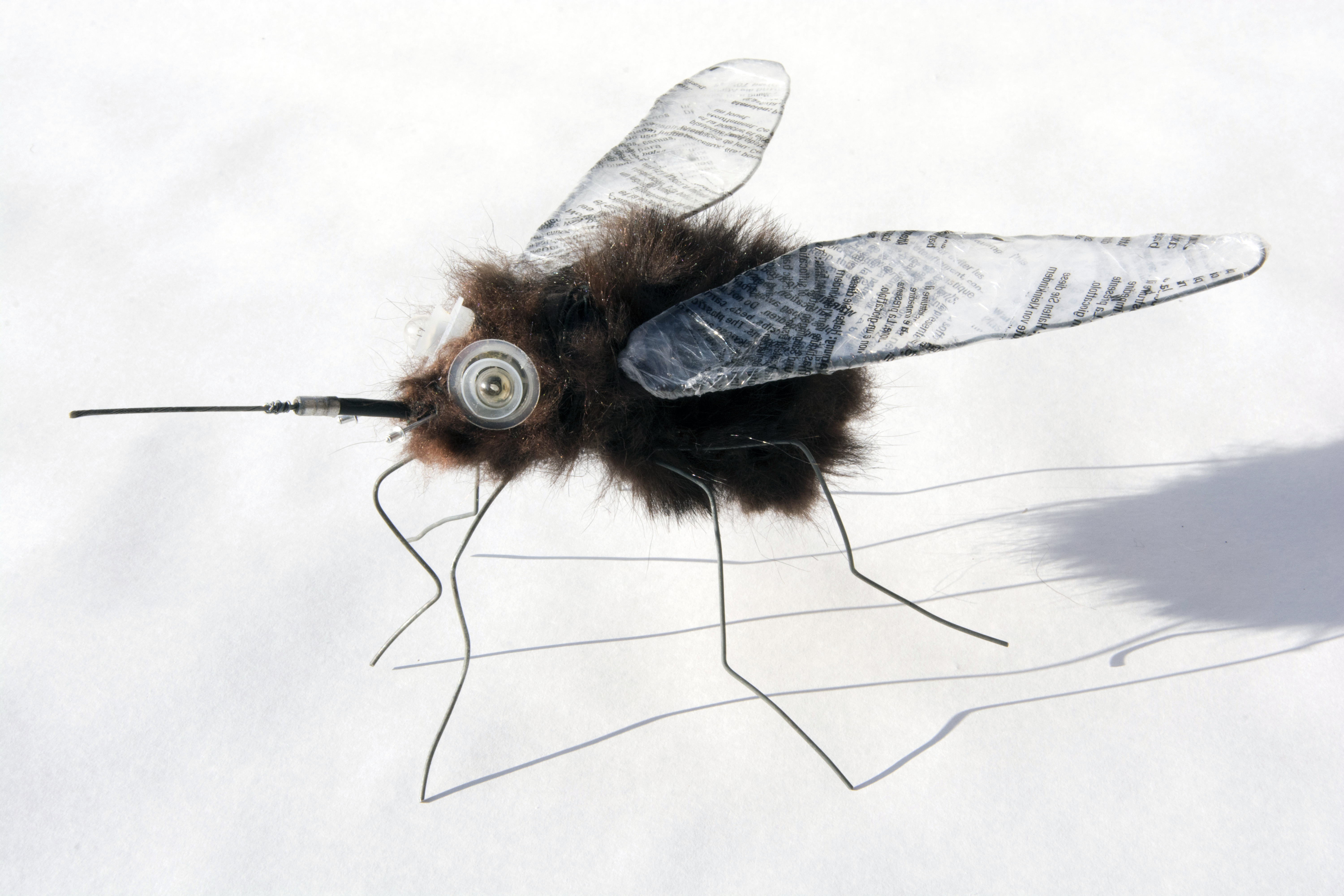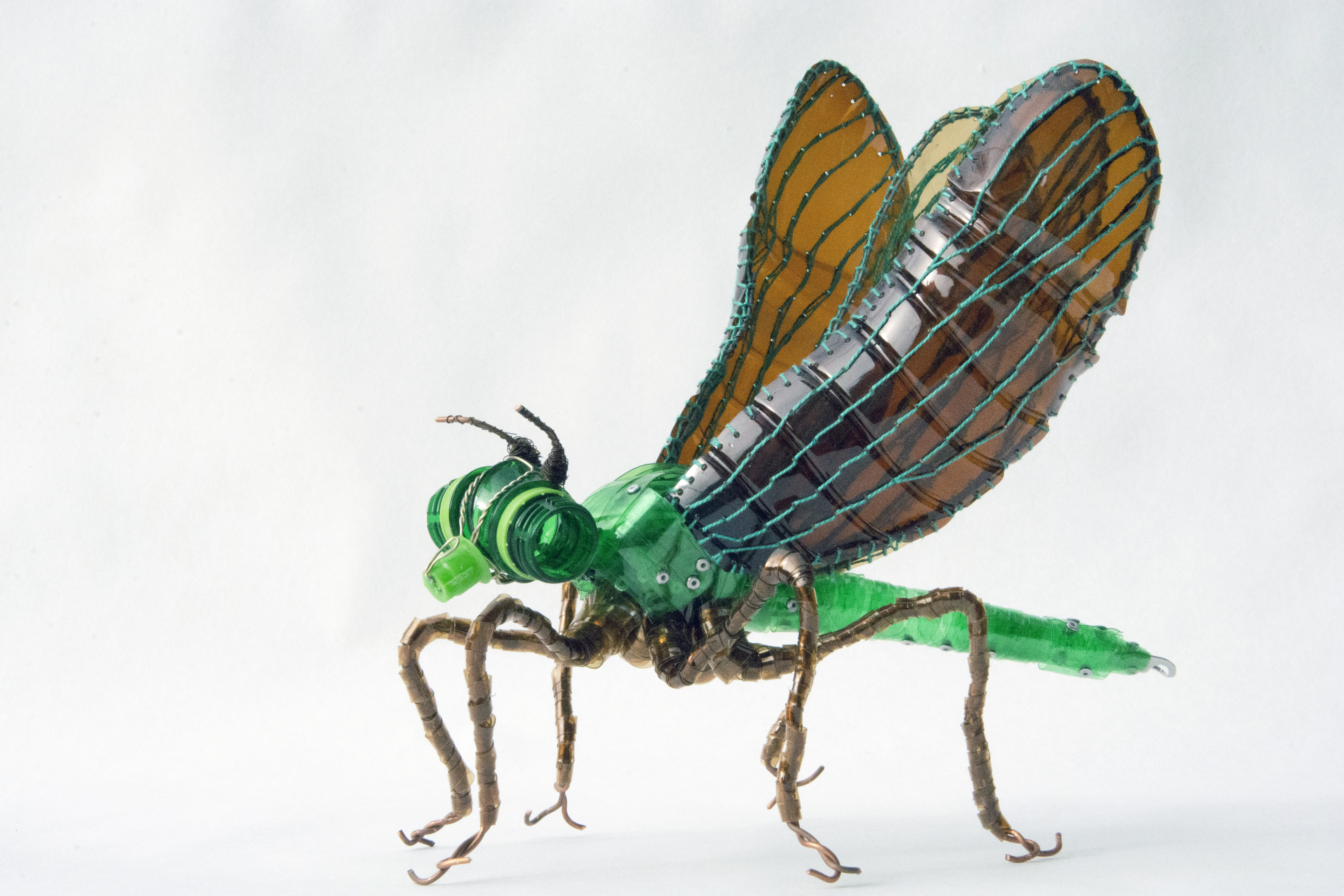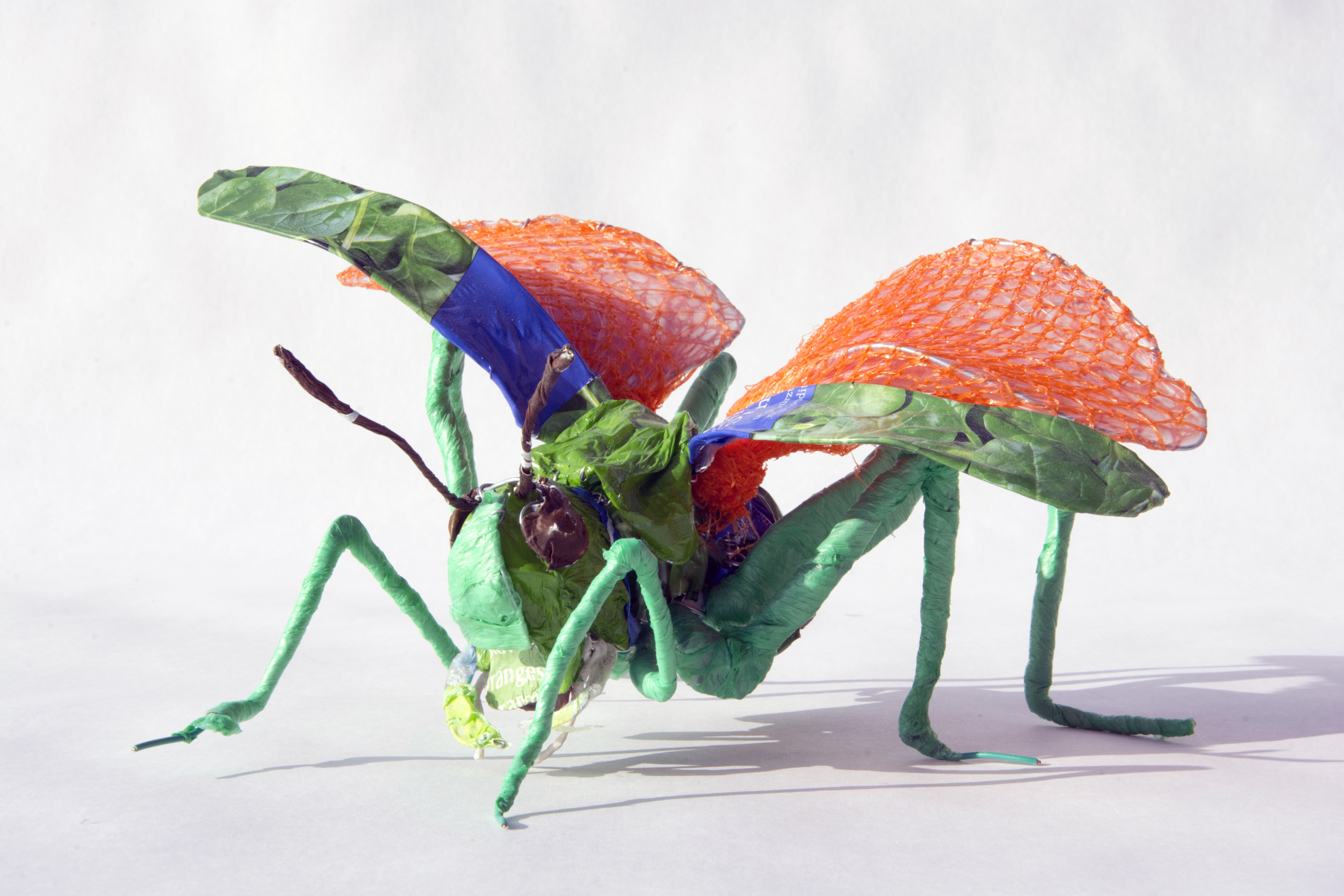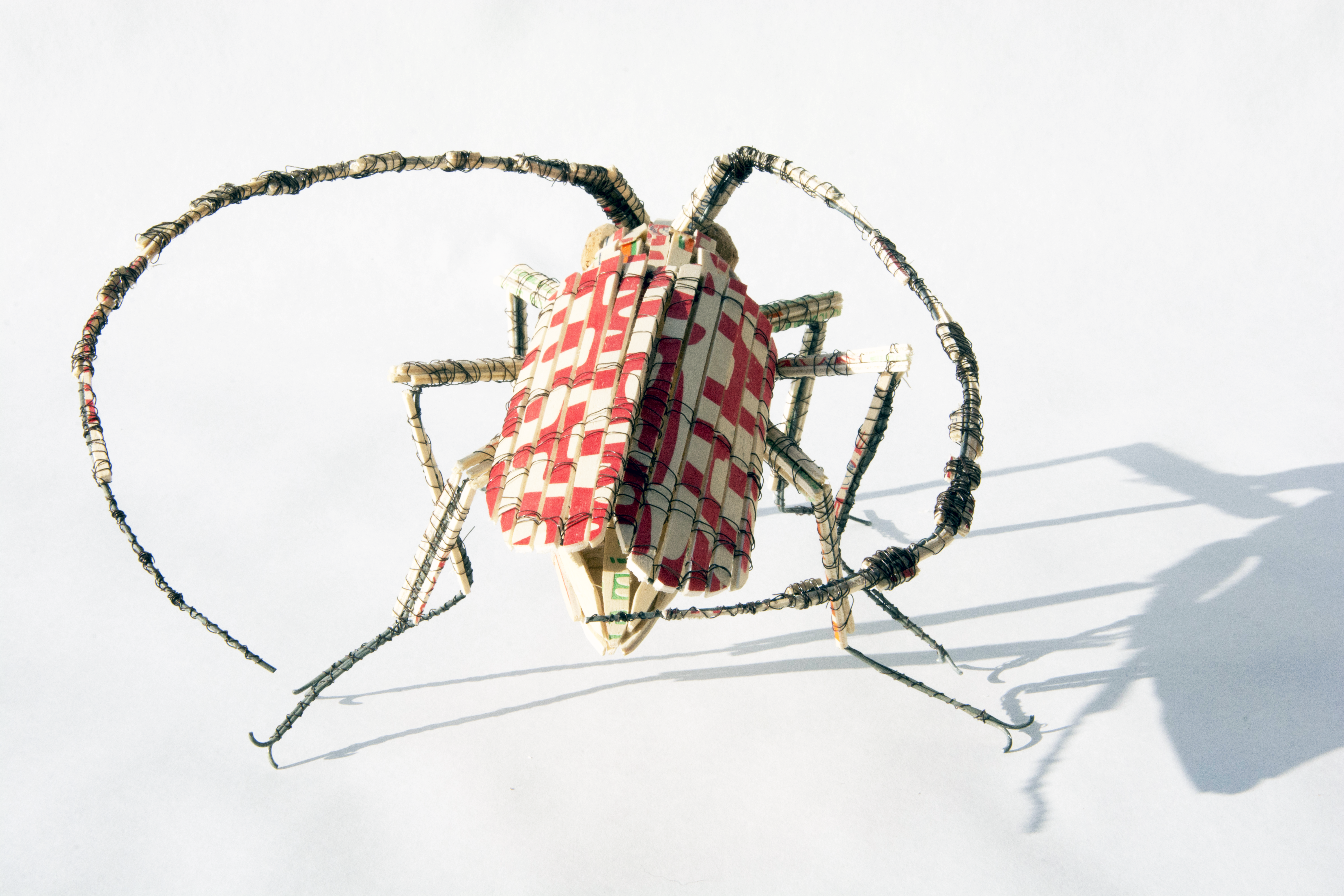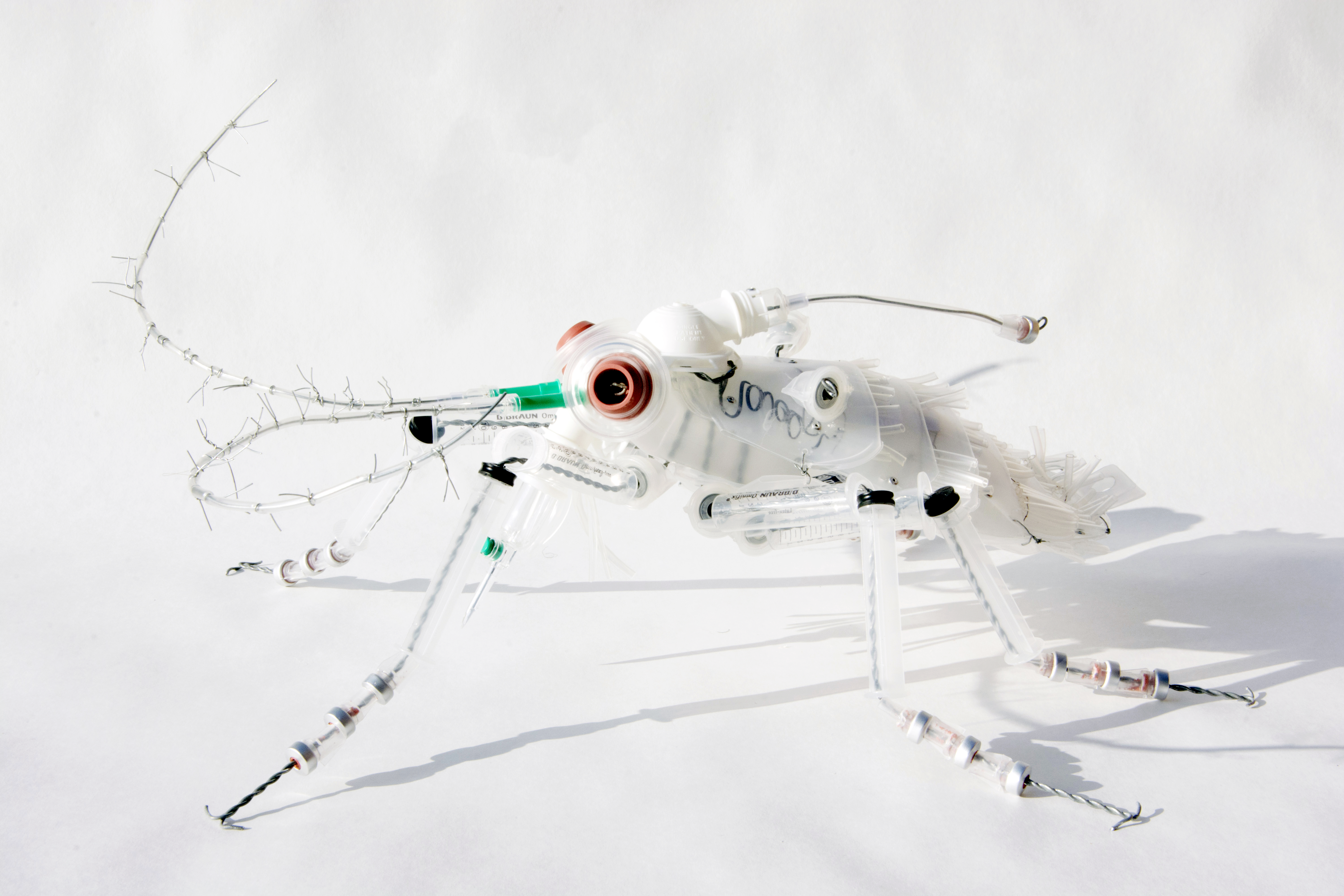 40% des insectes sont menacés d'extinction. 2,5% de la biomasse totale des insectes diminue chaque année à cause de l'Homme. Ces bestioles font partie de notre quotidien, nous les rencontrons partout, sur tous les continents. Mais que connaissons-nous des insectes qui représentent le 70% du monde animal ? Une tentative imaginaire est amorcée par cette série d'insectes en matériaux de récupération qui oeuvrent comme objets témoins de notre société. Syrphe en complet d'escroc, chrysope en exterminateur de jardin, phrygane en sdf des rivières, bousier en bouffe-caca, nécrophore afficinados de viande morte, tous oeuvrent pour la survie et déploient des stratagèmes incroyables, indispensables au cycle de la vie.