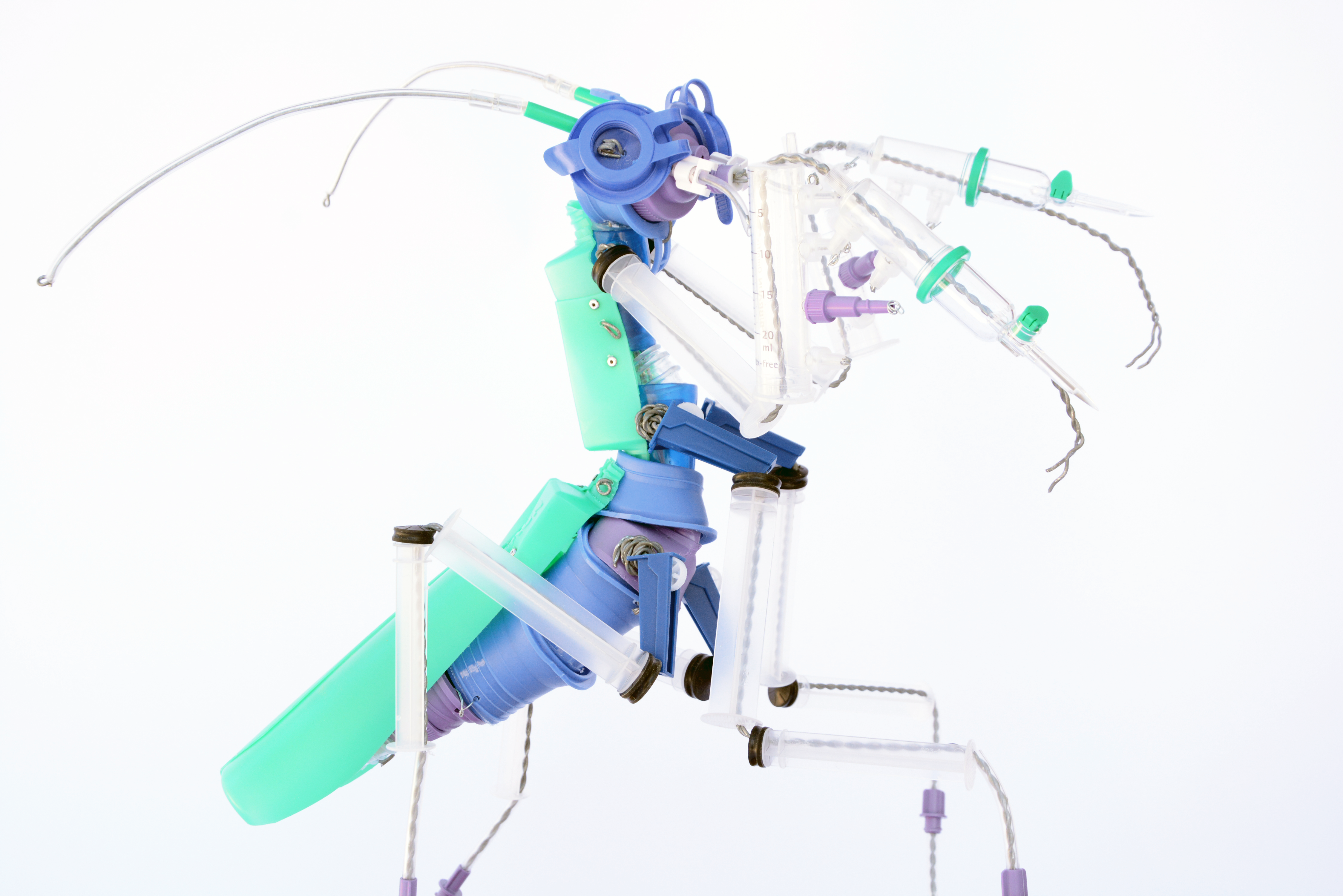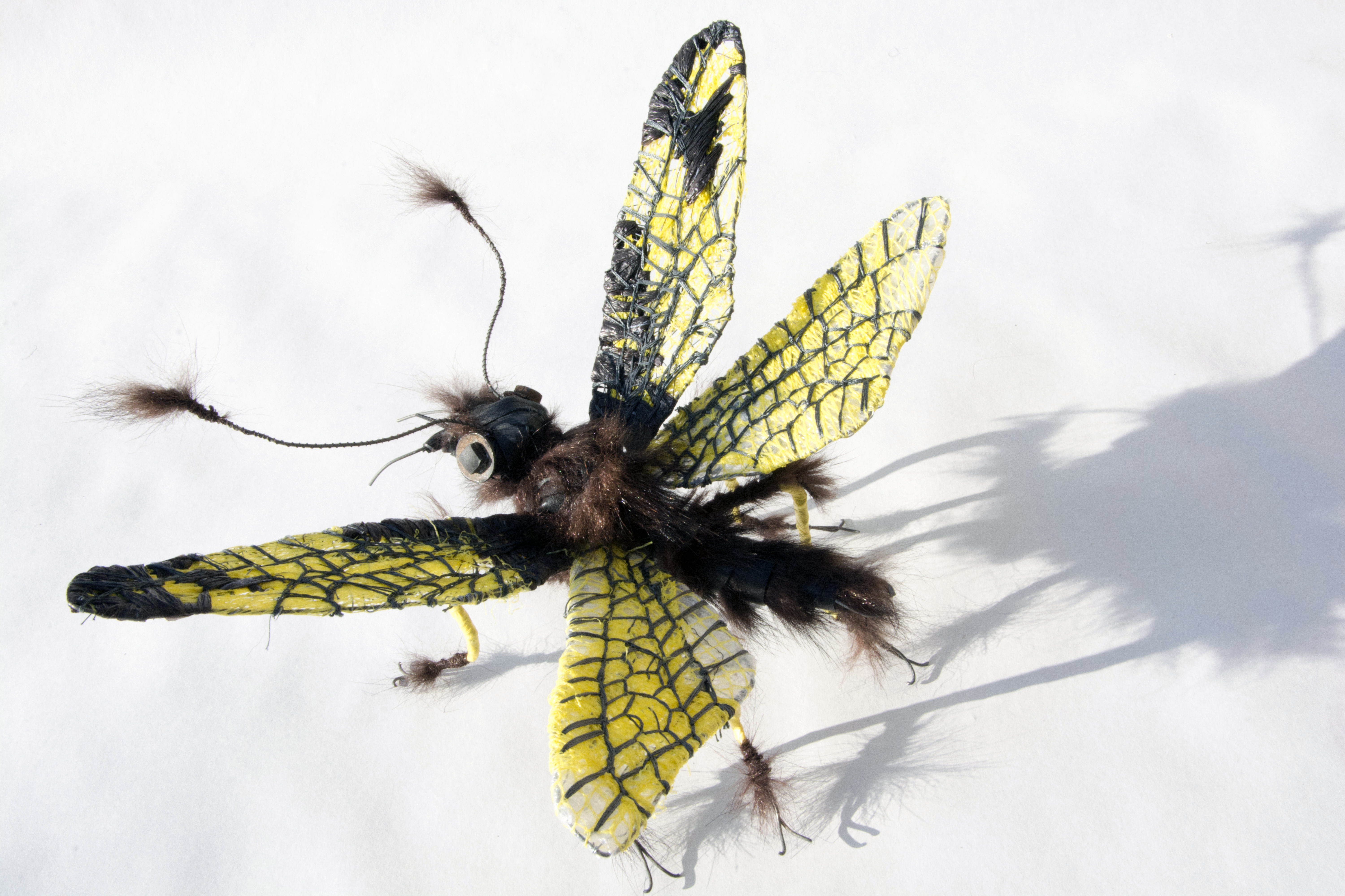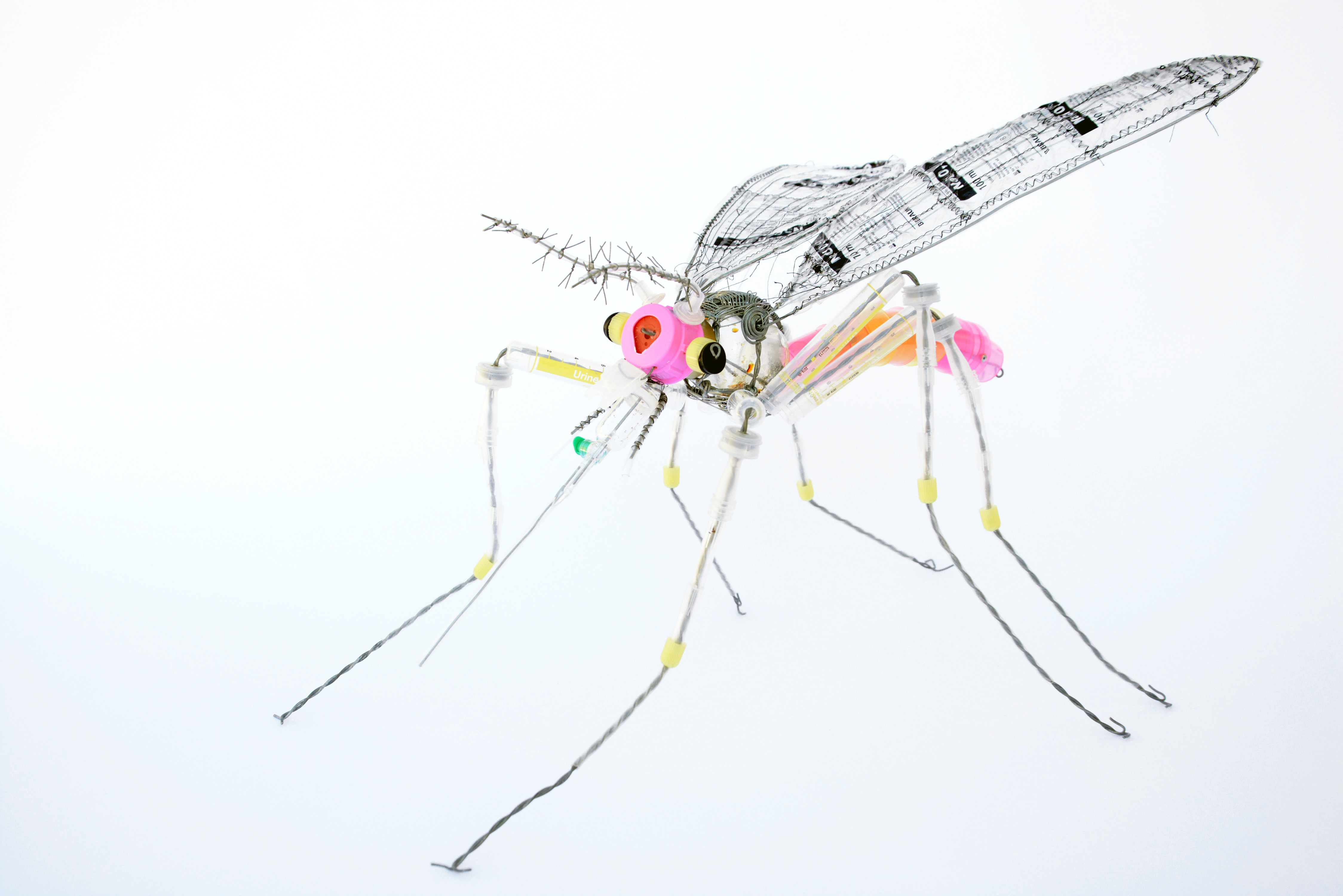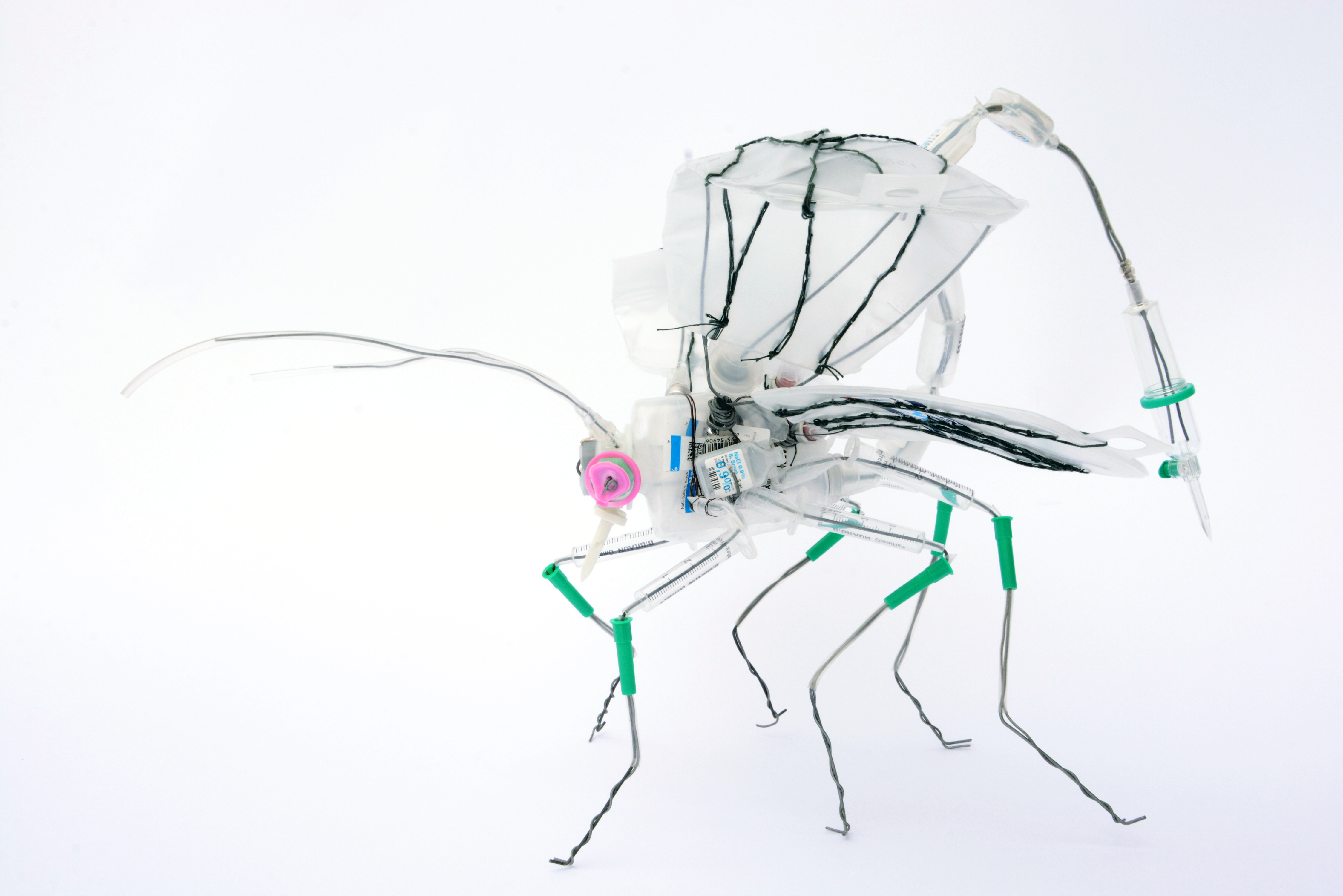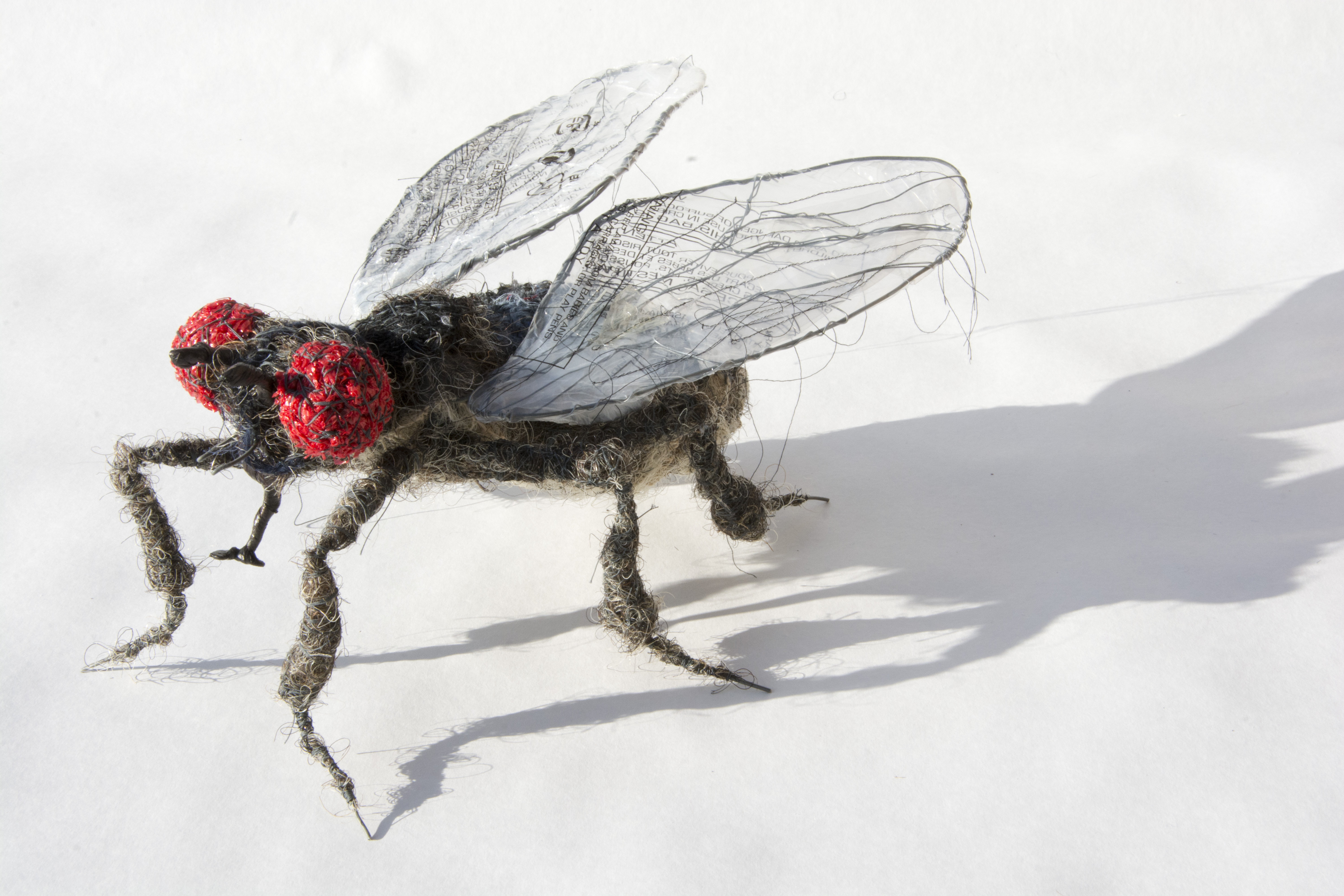 40% des insectes sont menacés d'extinction. 2,5% de la biomasse totale des insectes diminue chaque année à cause de l'Homme. Ces bestioles font partie de notre quotidien, nous les rencontrons partout, sur tous les continents. Mais que connaissons-nous des insectes qui représentent le 70% du monde animal ? Une tentative imaginaire est amorcée par cette série d'insectes en matériaux de récupération qui oeuvrent comme objets témoins de notre société. Syrphe en complet d'escroc, chrysope en exterminateur de jardin, phrygane en sdf des rivières, bousier en bouffe-caca, nécrophore afficinados de viande morte, tous oeuvrent pour la survie et déploient des stratagèmes incroyables, indispensables au cycle de la vie.